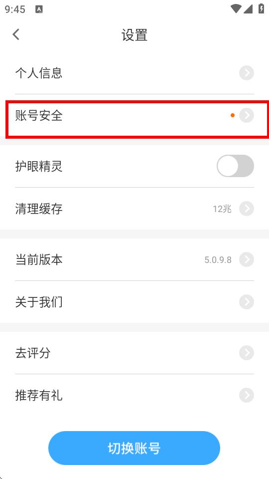 3、在設(shè)置頁面里,點擊賬號安全選項,進入賬號安全設(shè)置界面。