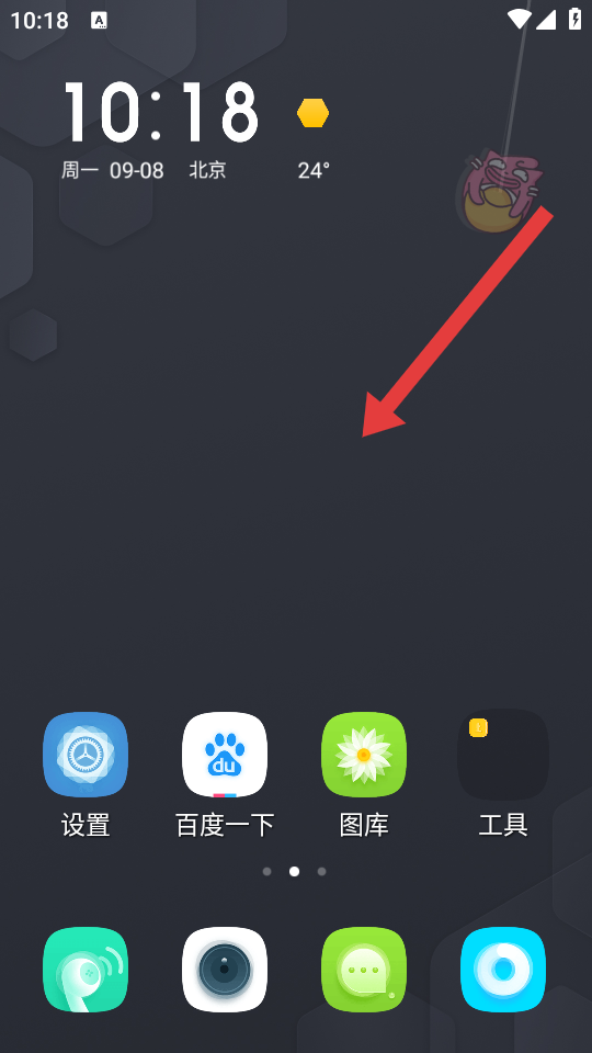 1、在手機(jī)主屏幕上,長(zhǎng)按桌面桌面空白區(qū)域,調(diào)出桌面設(shè)置的快捷操作菜單。