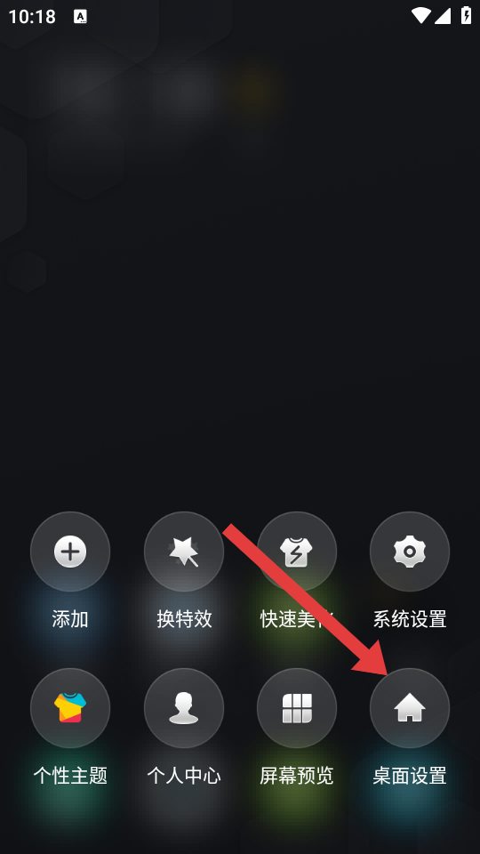 2、在彈出的快捷操作菜單中,點(diǎn)擊桌面設(shè)置選項(xiàng),進(jìn)入桌面設(shè)置的頁(yè)面。