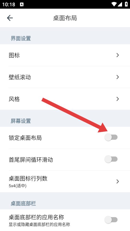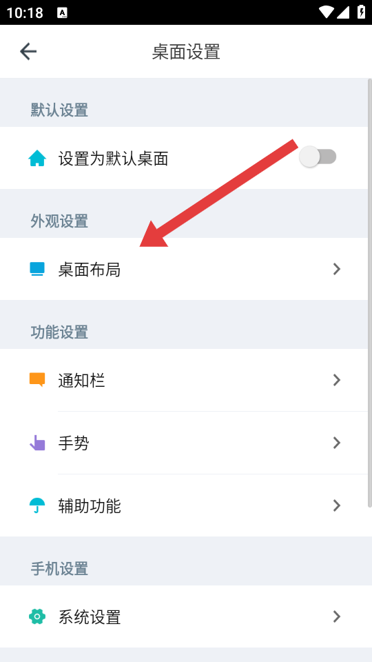 3、在桌面設(shè)置頁(yè)面,找到并點(diǎn)擊桌面布局選項(xiàng),進(jìn)入桌面布局的詳細(xì)設(shè)置界面。