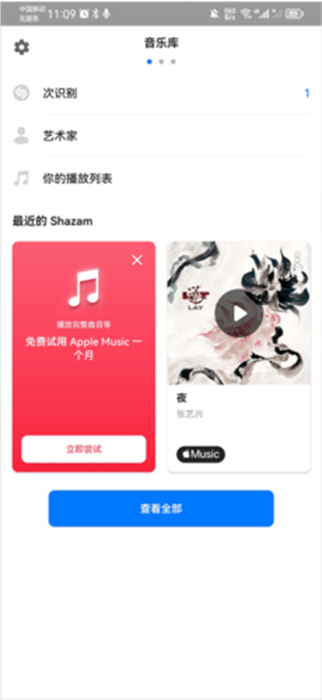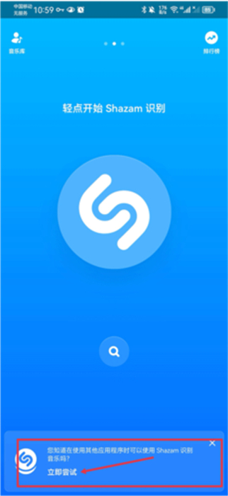 1、打開軟件之后在識(shí)別音樂的頁面下面點(diǎn)擊下方的立即嘗試;