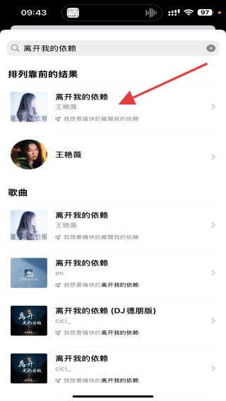 4、搜索結(jié)果出來后,點(diǎn)擊目標(biāo)歌曲即可開始播放。
