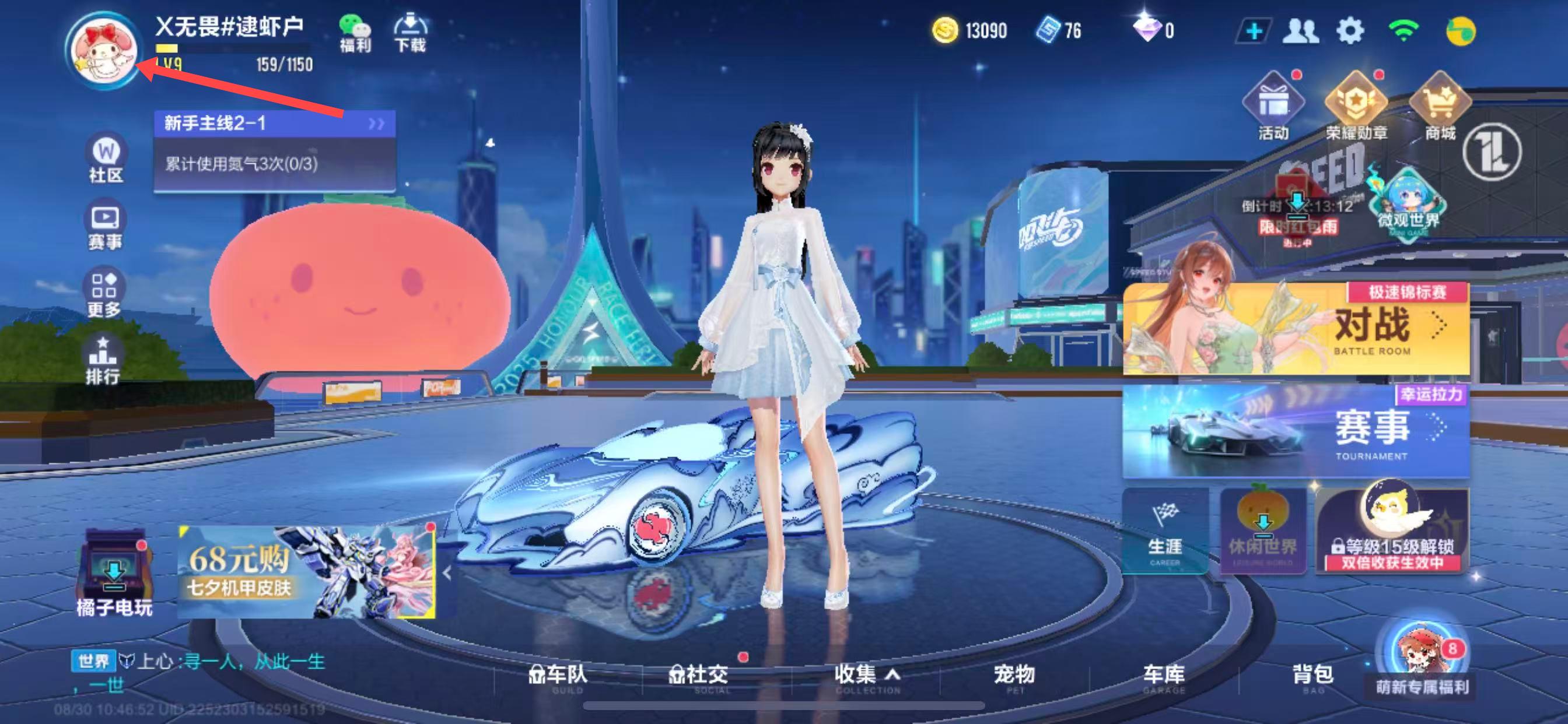 1、進(jìn)入游戲主界面,點(diǎn)擊左上角的個(gè)人頭像,進(jìn)入個(gè)人信息相關(guān)頁(yè)面。
