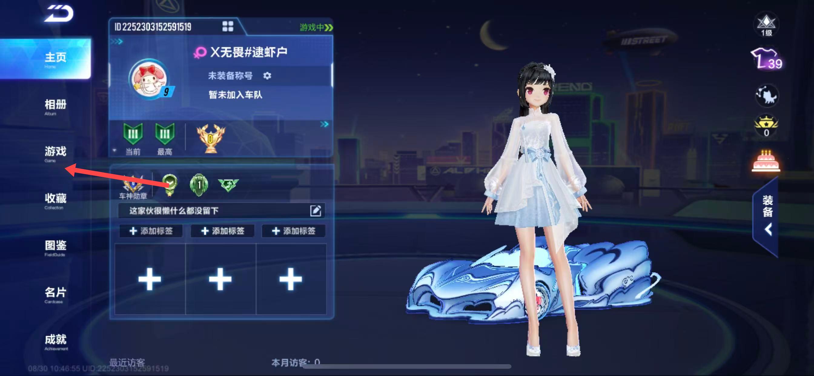 2、在個(gè)人信息界面左側(cè)菜單欄,點(diǎn)擊游戲選項(xiàng)。