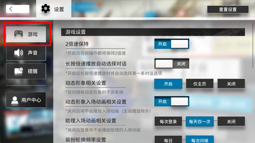 2、在設(shè)置界面中,點(diǎn)擊左側(cè)列表里的游戲選項(xiàng)進(jìn)入游戲設(shè)置相關(guān)頁(yè)面。