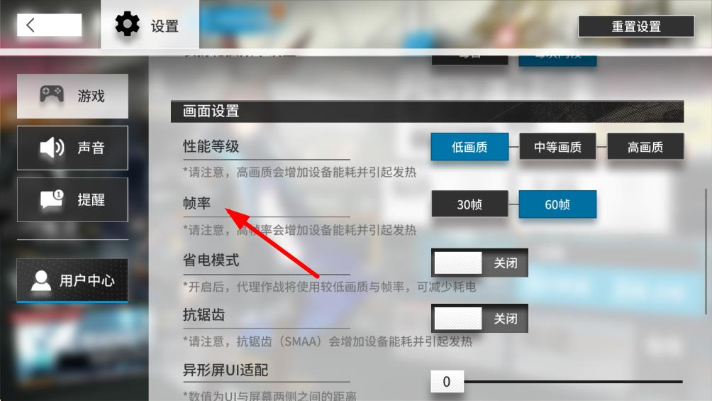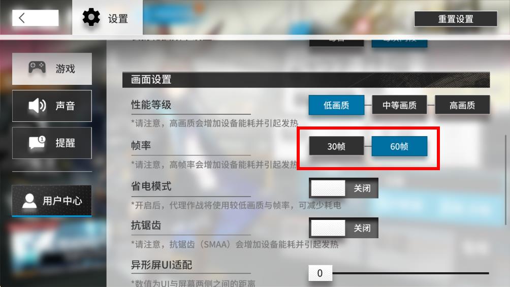 4、根據(jù)自己的設(shè)備性能和需求,點(diǎn)擊選擇30幀或者60幀的按鈕,即可完成幀率設(shè)置修改。