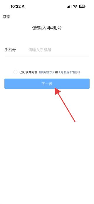 3、在請輸入手機(jī)號頁面,輸入手機(jī)號并勾選已閱讀并同意后,點(diǎn)擊下一步按鈕。