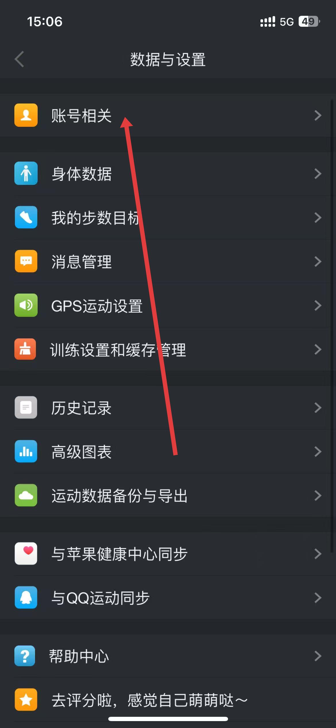 3、在數(shù)據(jù)與設(shè)置頁(yè)面,找到并點(diǎn)擊賬號(hào)相關(guān)選項(xiàng)。