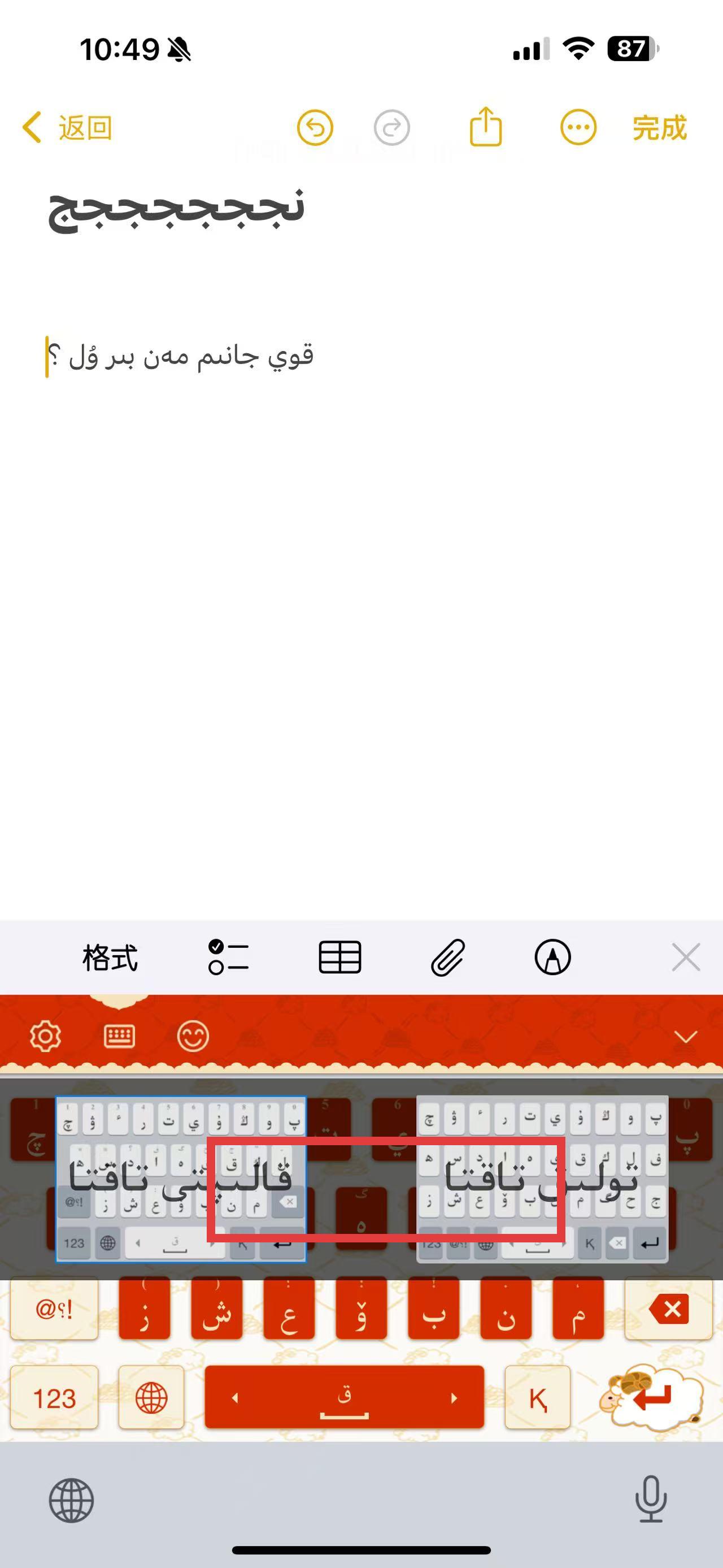 2、鍵盤切換后,選擇紅框標注的文字區(qū)域,快速填入所需內(nèi)容,助力文字編輯流程。