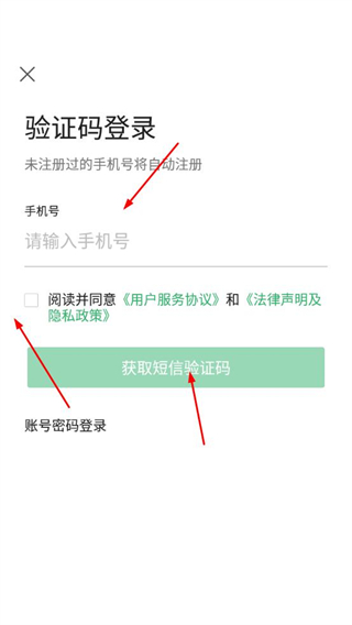 3、填入收到的驗證碼,未注冊的手機號將自動完成注冊并登錄。