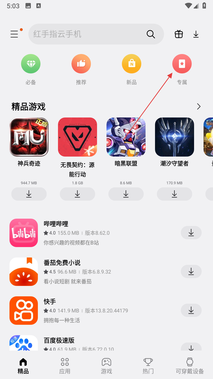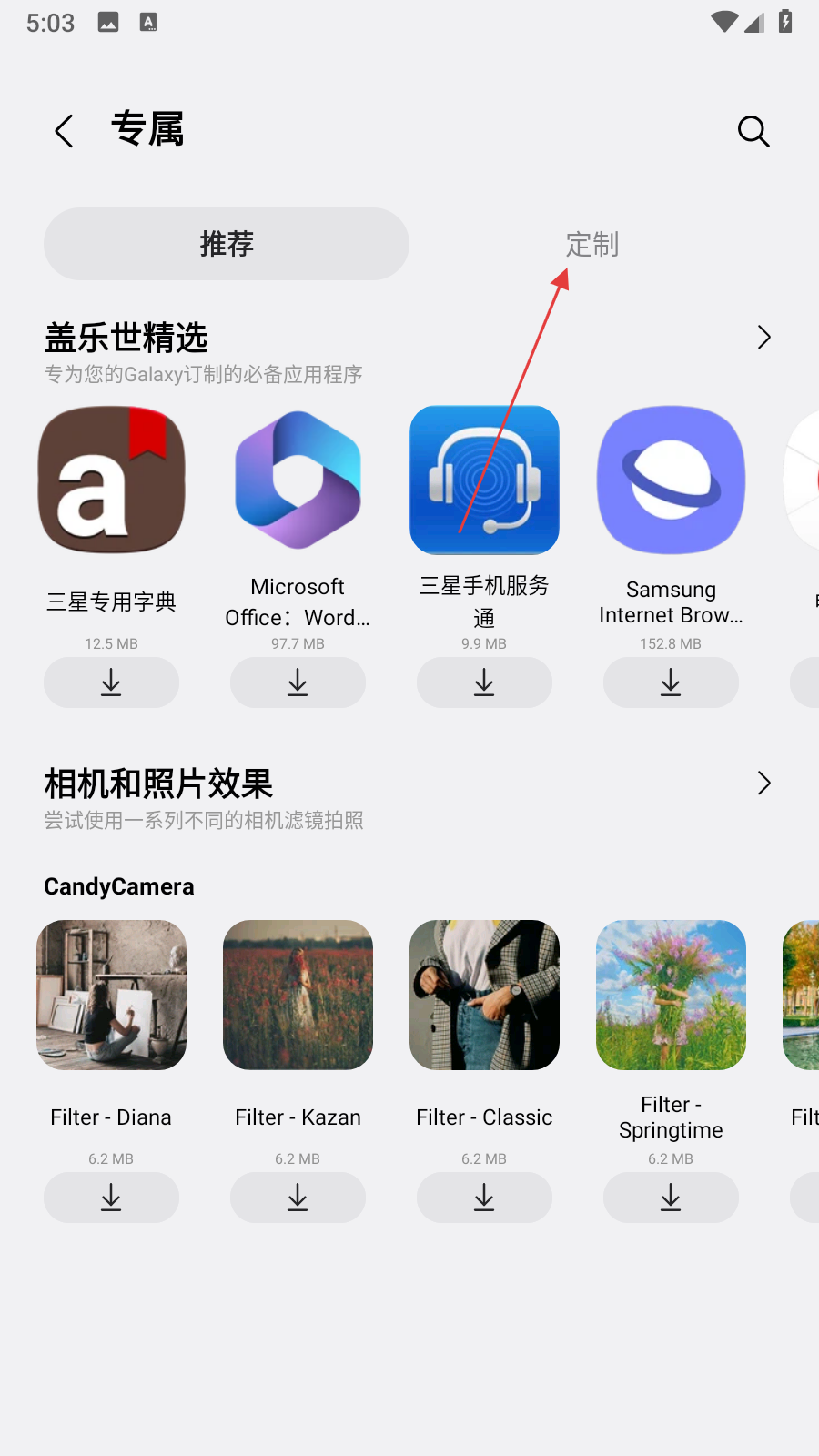 1、打開三星應(yīng)用商城,在首頁(yè)點(diǎn)擊專屬選項(xiàng),進(jìn)入專屬頁(yè)面。
