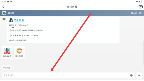 3、在進(jìn)入到在線客服頁面后,可以在下方輸入框內(nèi)輸入問題詢問客服。