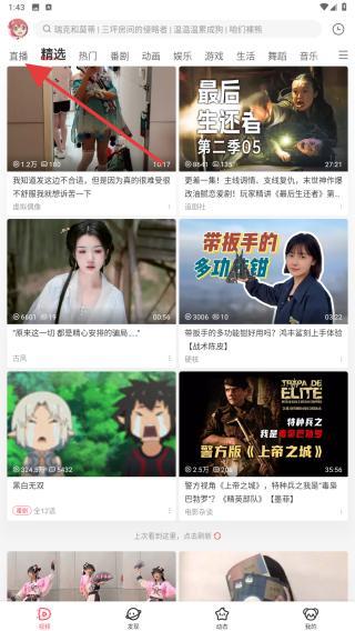 1、進(jìn)入首頁(yè),在頁(yè)面頂部導(dǎo)航欄,找到并點(diǎn)擊直播的標(biāo)簽,跳轉(zhuǎn)至直播專區(qū)。