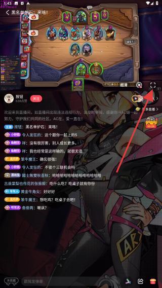 3、進(jìn)入到直播頁(yè)面,用戶可點(diǎn)擊全屏的按鈕放大觀看,也可發(fā)送相關(guān)內(nèi)容的評(píng)論與主播進(jìn)行互動(dòng)。