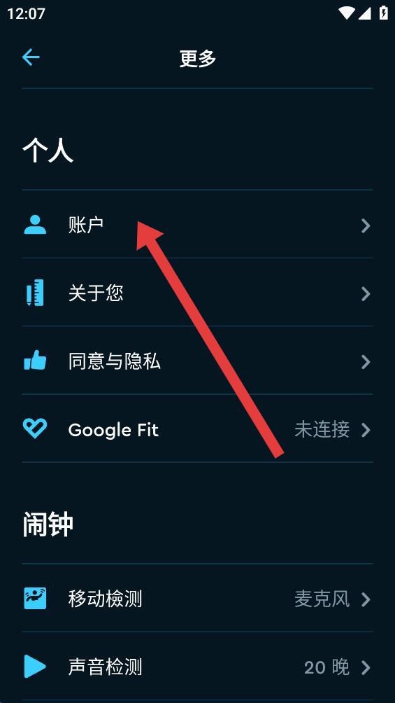 3、進(jìn)入更多設(shè)置頁(yè)面后,點(diǎn)擊賬戶選項(xiàng),進(jìn)入賬戶登錄相關(guān)界面。