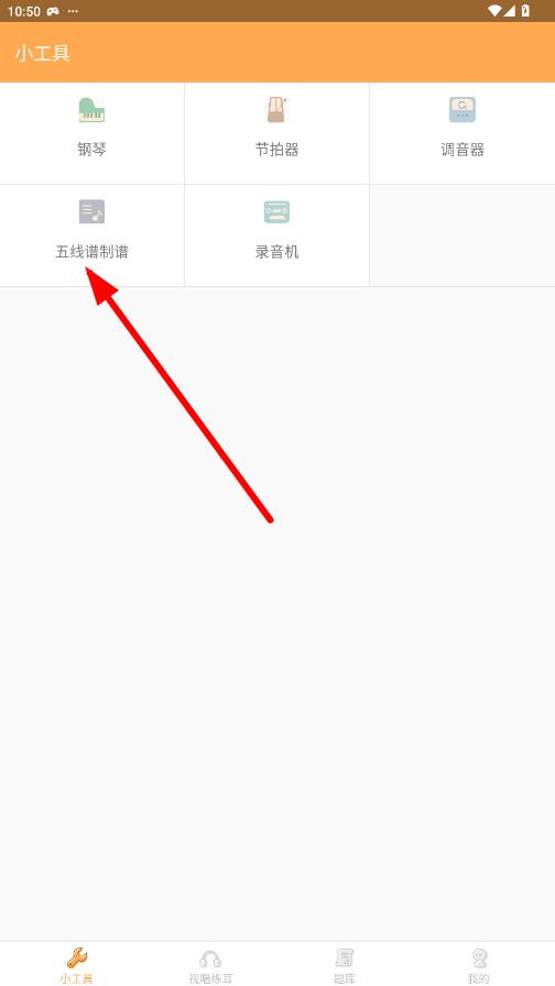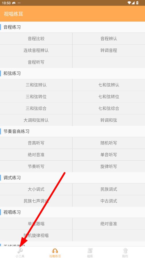 1、在練耳大師APP界面,點(diǎn)擊底部小工具選項(xiàng),進(jìn)入小工具頁面。