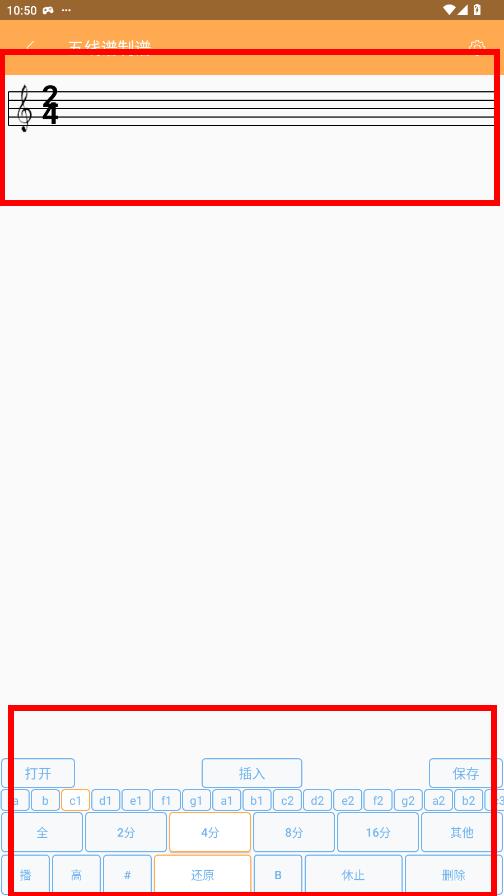 4、完成節(jié)拍選擇后,即可進(jìn)入五線譜制譜界面,利用下方功能鍵進(jìn)行制譜操作。