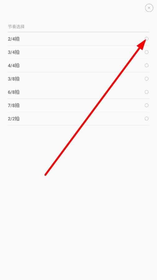 3、在節(jié)奏選擇界面,選擇所需的節(jié)拍如2/4拍等。