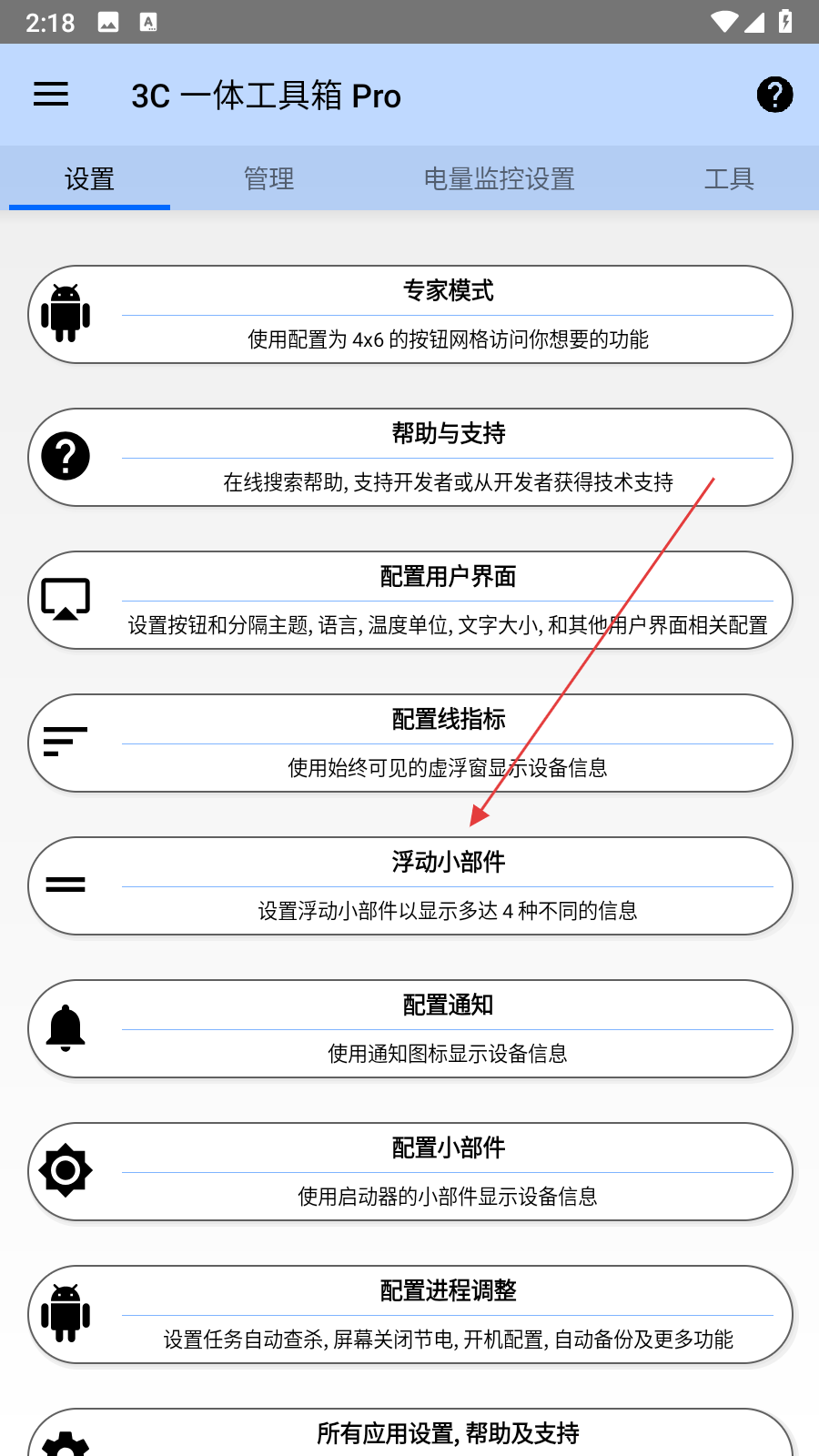 2、在設(shè)置界面中,點擊浮動小部件選項,進入浮動小部件設(shè)置頁面。