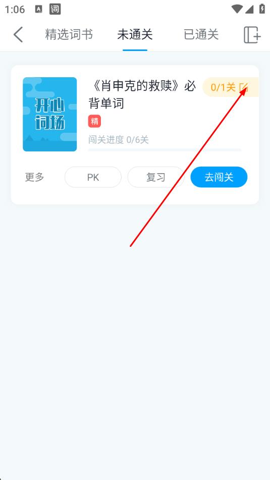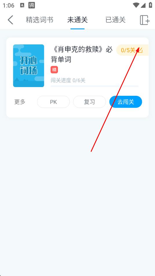 4、之后可以看到目標(biāo)詞書(shū)右上角顯示更新后的每日闖關(guān)數(shù)。