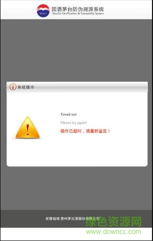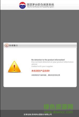 5.如果待測茅臺酒查詢失敗,則顯示如下圖所示的信息: