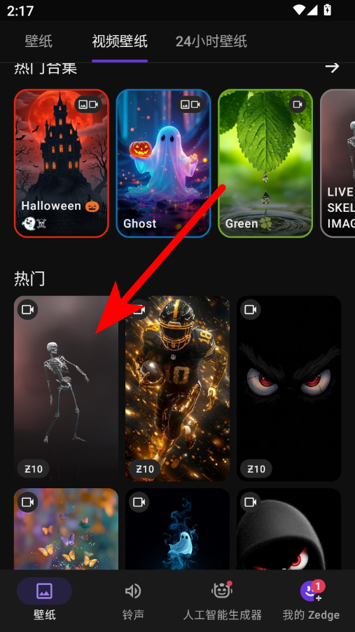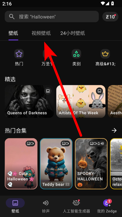 1、在Zedge壁紙頁面,點擊視頻壁紙選項,進入視頻壁紙列表界面。