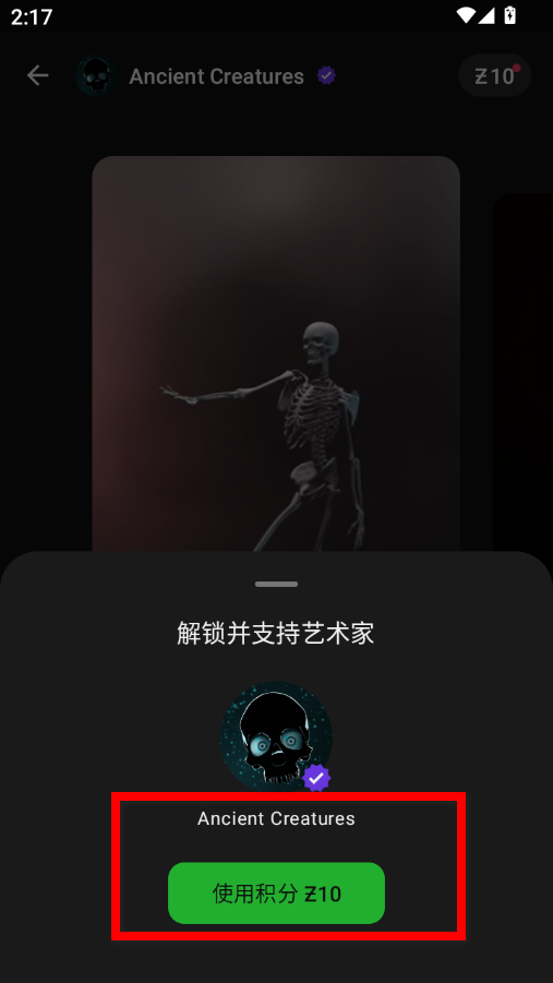 3、在壁紙詳情頁面,點擊下載按鈕,彈出積分使用提示框。