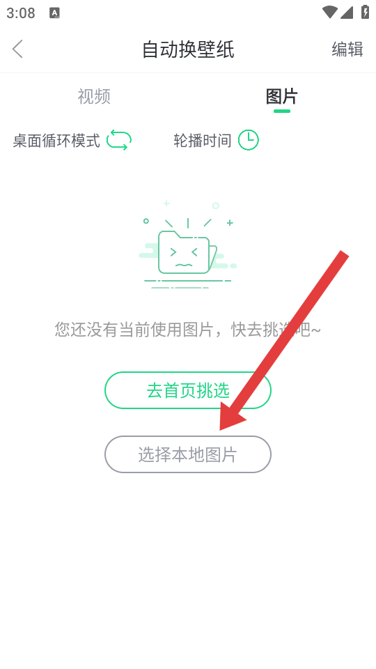 3、在自動(dòng)換壁紙頁(yè)面,點(diǎn)擊選擇本地圖片的按鈕,進(jìn)入本地圖片選擇界面。