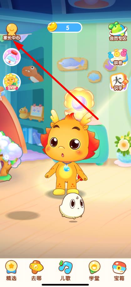 1、進(jìn)入小伴龍APP,點(diǎn)擊左上角家長(zhǎng)中心。
