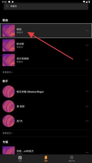 3、在搜索結(jié)果里,用戶需找到并點擊目標(biāo)歌曲。