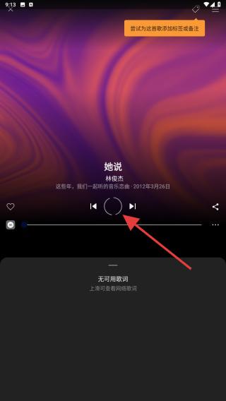 4、進(jìn)入歌曲播放界面后,點擊中間的播放按鈕,即可開始播放歌曲。