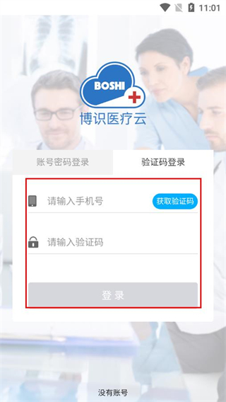 1、打開博識(shí)醫(yī)療云APP,在登錄頁面選擇驗(yàn)證碼登錄。
