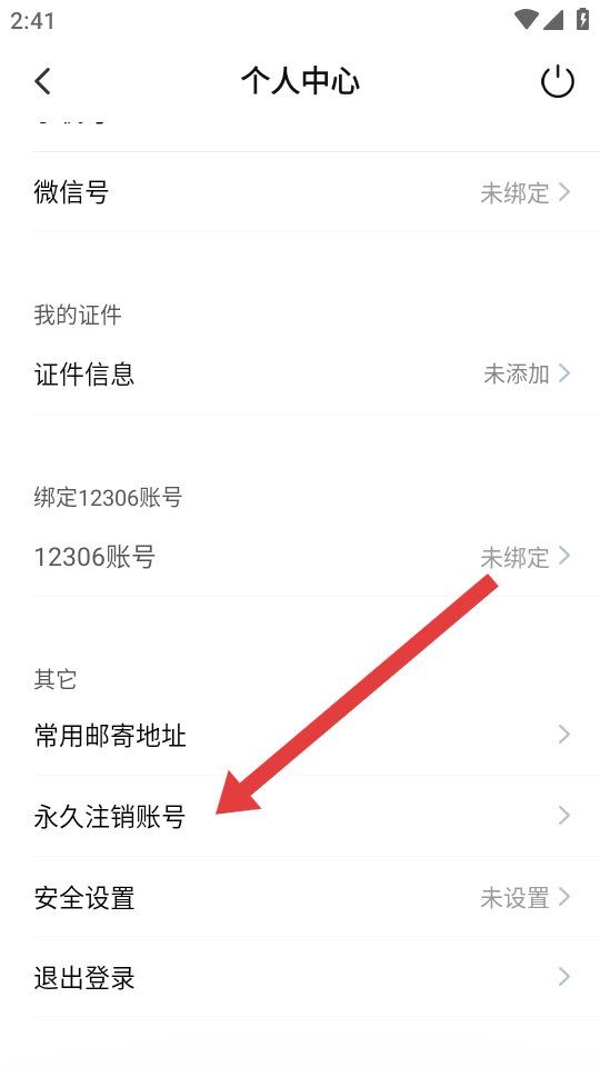 2、在個人中心頁面中,找到并點擊永久注銷賬號選項,進入賬號注銷確認(rèn)環(huán)節(jié),此步驟需仔細確認(rèn)操作入口。