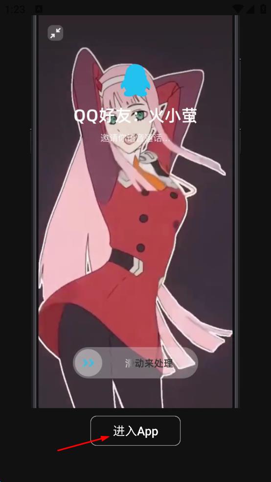 2、若有QQ好友語音通話邀請(qǐng),處理完邀請(qǐng)后,點(diǎn)擊“進(jìn)入App”按鈕,進(jìn)入軟件主界面 。