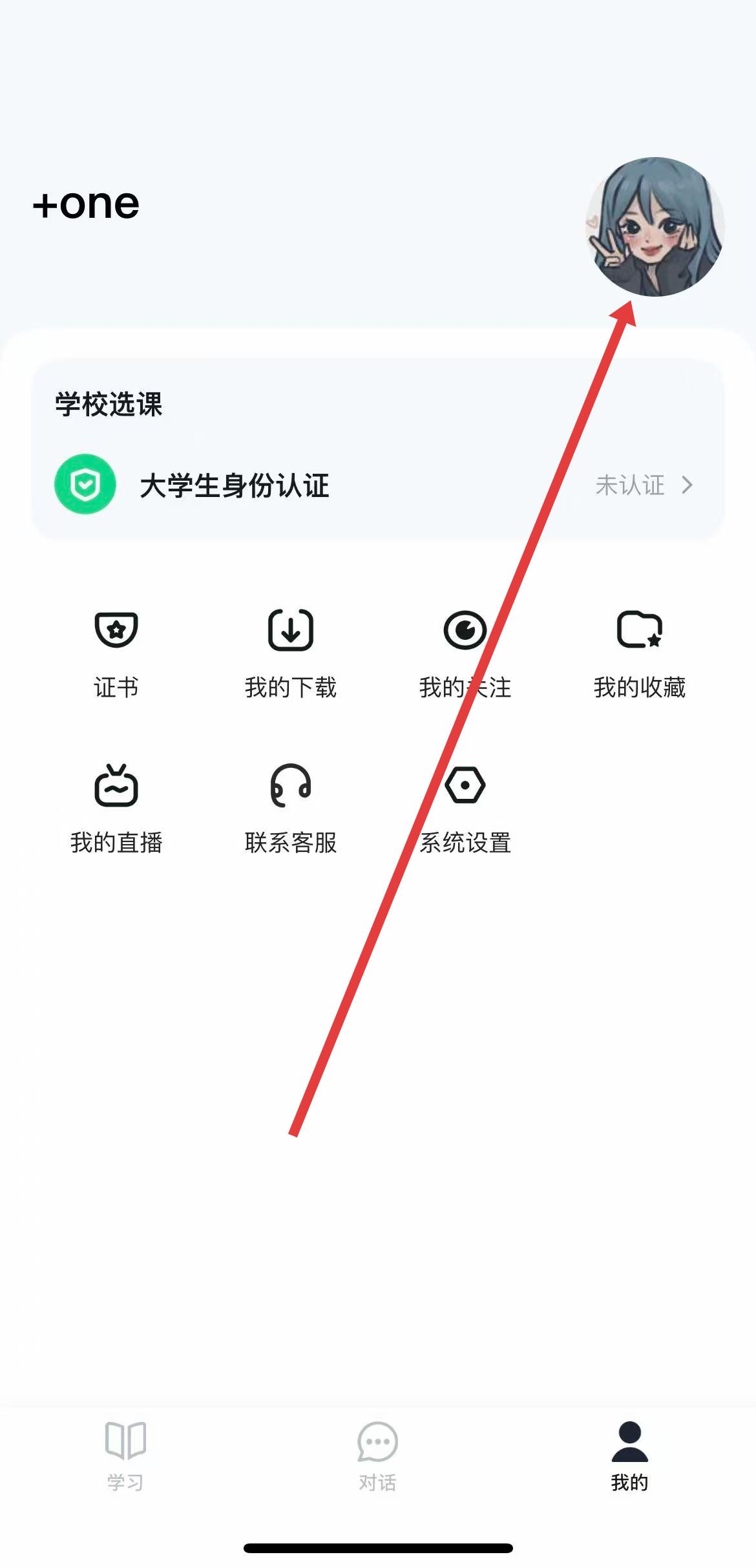 1、打開知到APP,點(diǎn)擊底部導(dǎo)航欄我的,再點(diǎn)擊頁面右上角的頭像,進(jìn)入個(gè)人資料頁面。