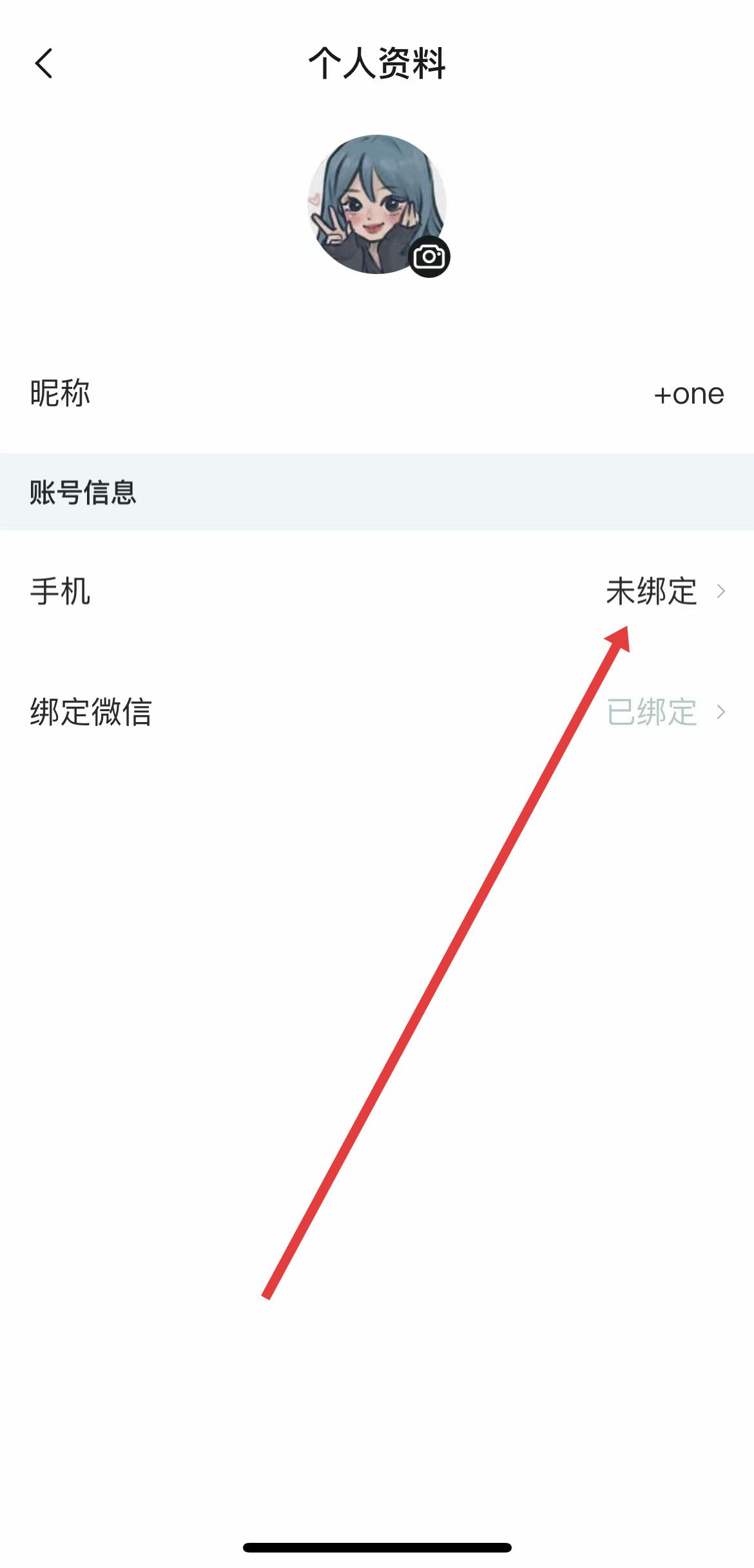 2、在個(gè)人資料頁面中,找到手機(jī)選項(xiàng),點(diǎn)擊未綁定,進(jìn)入關(guān)聯(lián)手機(jī)號(hào)頁面。