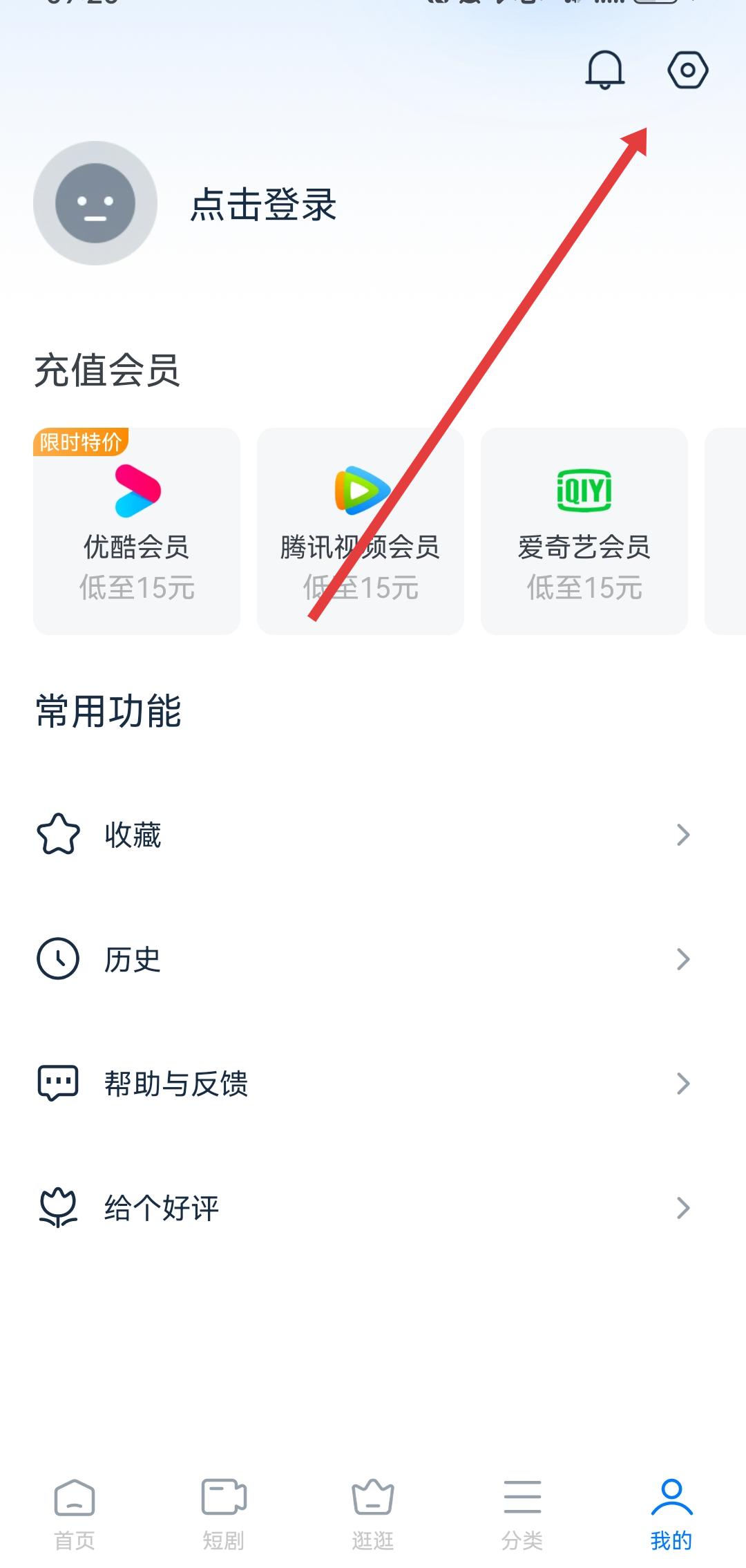 1、打開影視大全APP,進入我的頁面,需要點擊右上角的設(shè)置圖標(biāo),進入設(shè)置的界面。