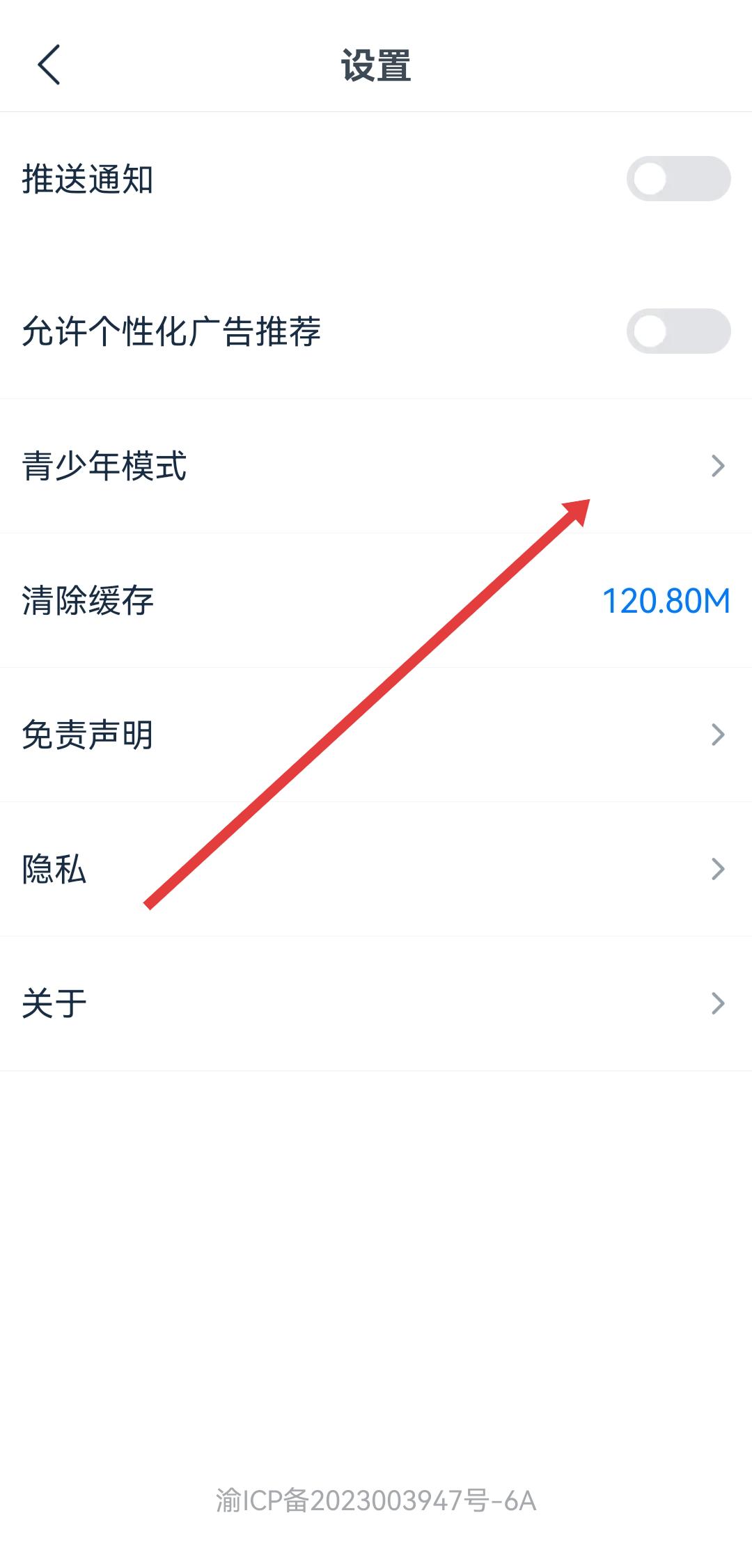 2、在設(shè)置的界面中,找到并點擊青少年模式的選項,進入青少年模式設(shè)置的頁面。