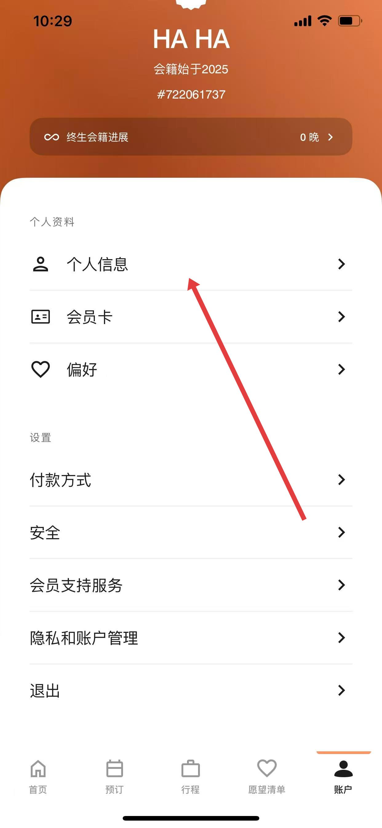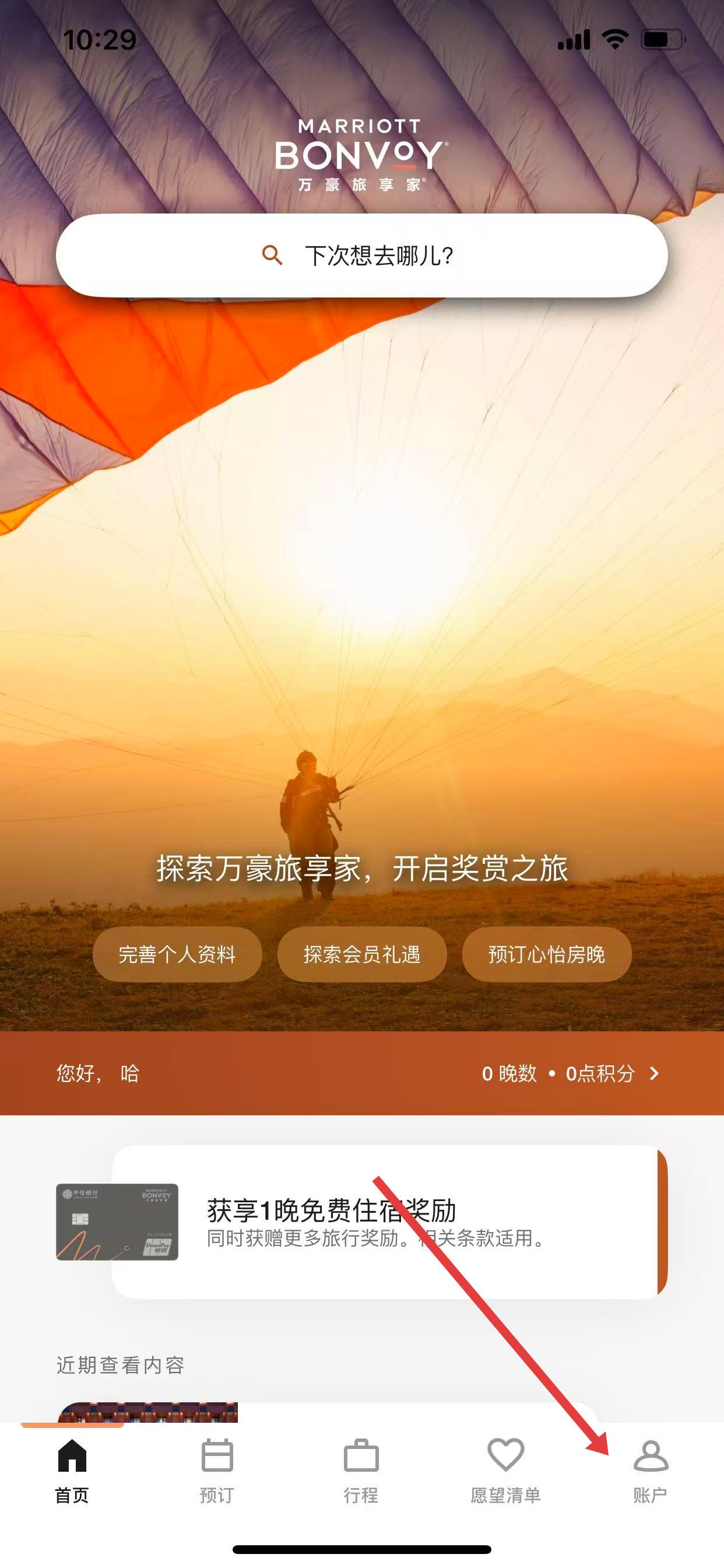 1、打開萬豪旅享家APP,點(diǎn)擊底部導(dǎo)航欄最右側(cè)的賬戶。