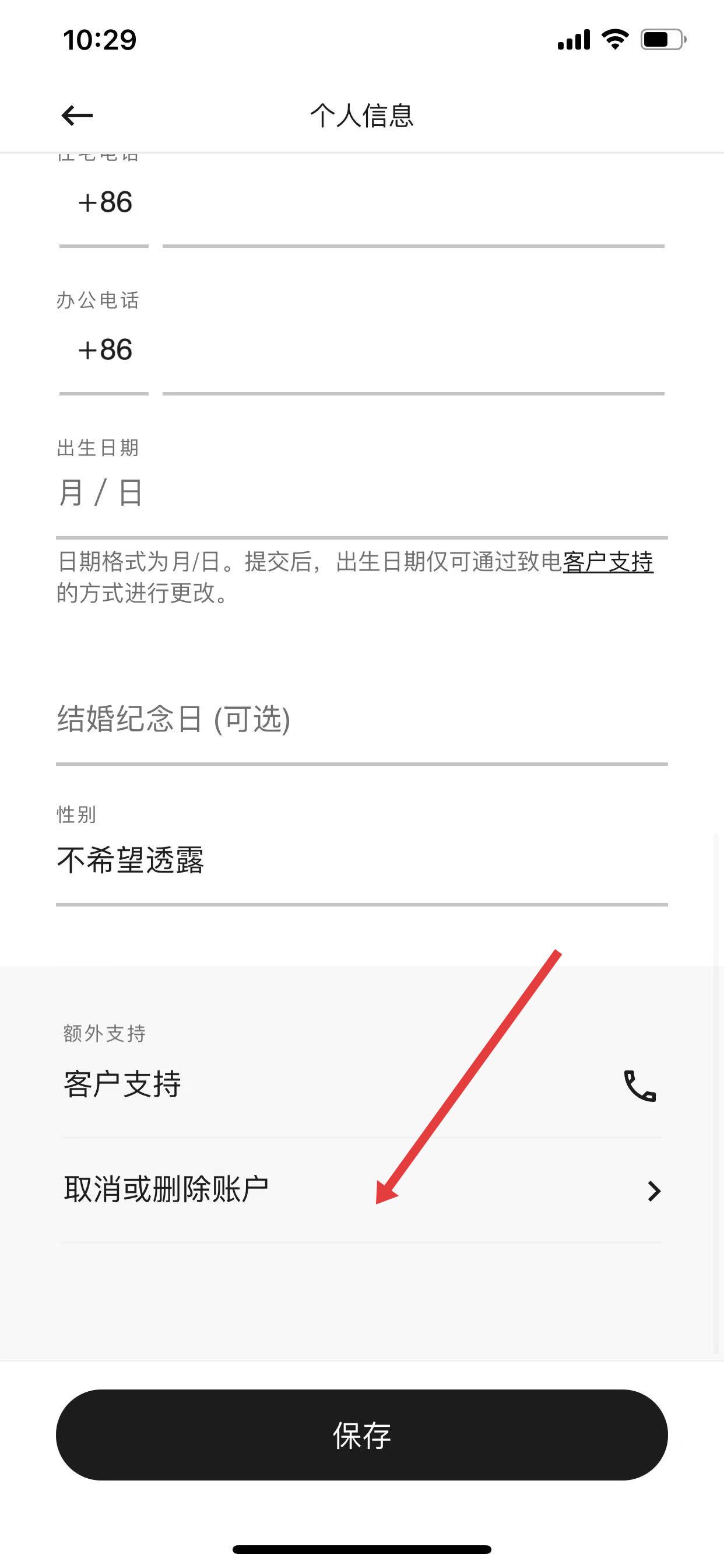 3、下滑個人信息頁面,點(diǎn)擊取消或刪除賬戶。