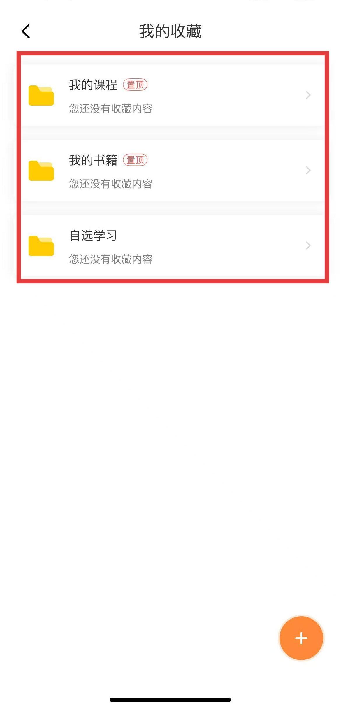 3、點擊收藏進入收藏頁面后,能看到我的課程,我的書籍,自選學(xué)習(xí)等分類文件夾,可以快速找到之前收藏的課程、書籍和學(xué)習(xí)內(nèi)容。