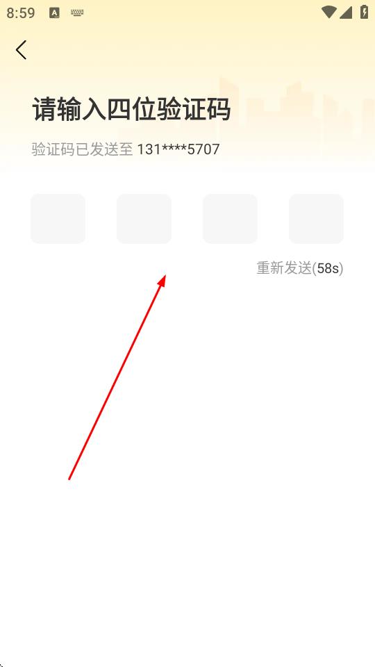 3、在驗證碼輸入頁面,填寫收到的四位驗證碼。