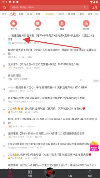 1、打開dj多多APP,點擊想要播放的音樂名稱。