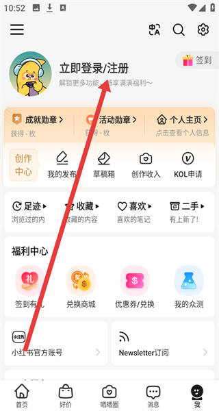 2、個人中心頁面點擊“立即登錄/注冊”,進入登錄選擇頁面。