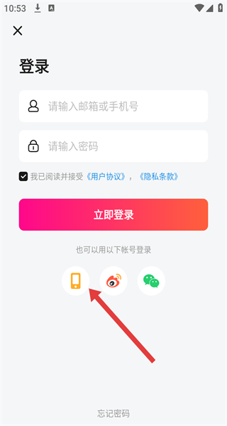 3、登錄選擇頁面點擊手機號登錄選項,進入手機號登錄界面。