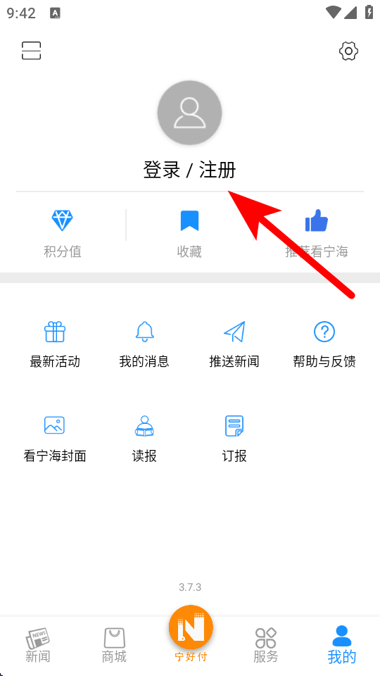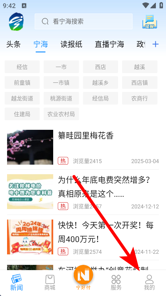 1、打開看寧海APP首頁,點擊底部我的,進(jìn)入個人功能的頁面。