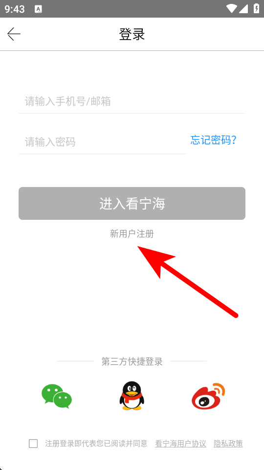 3、在登錄注冊選擇界面,點擊新用戶注冊,進(jìn)入賬號注冊填寫頁面。