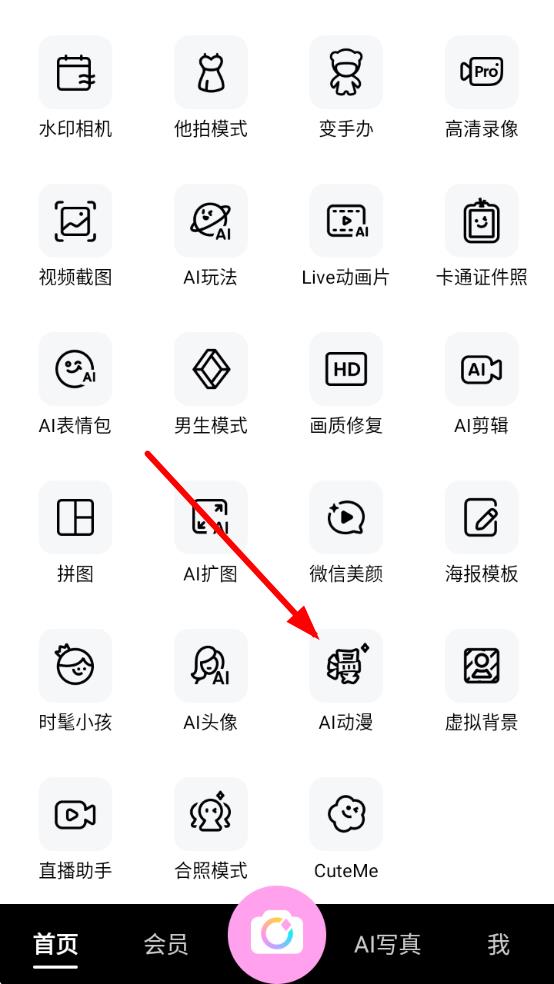 2、在展開的功能列表里,找到并點擊AI動漫選項,進入AI動漫制作界面。