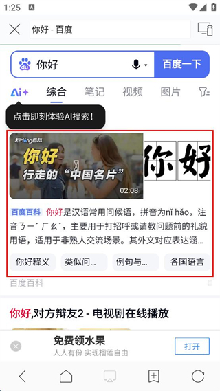 3、搜索結(jié)果出來(lái)后,點(diǎn)擊相關(guān)視頻或百科內(nèi)容,進(jìn)入詳情頁(yè)面。