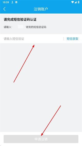 6、在短信驗(yàn)證碼認(rèn)證頁面,輸入收到的短信驗(yàn)證碼,點(diǎn)擊申請注銷。